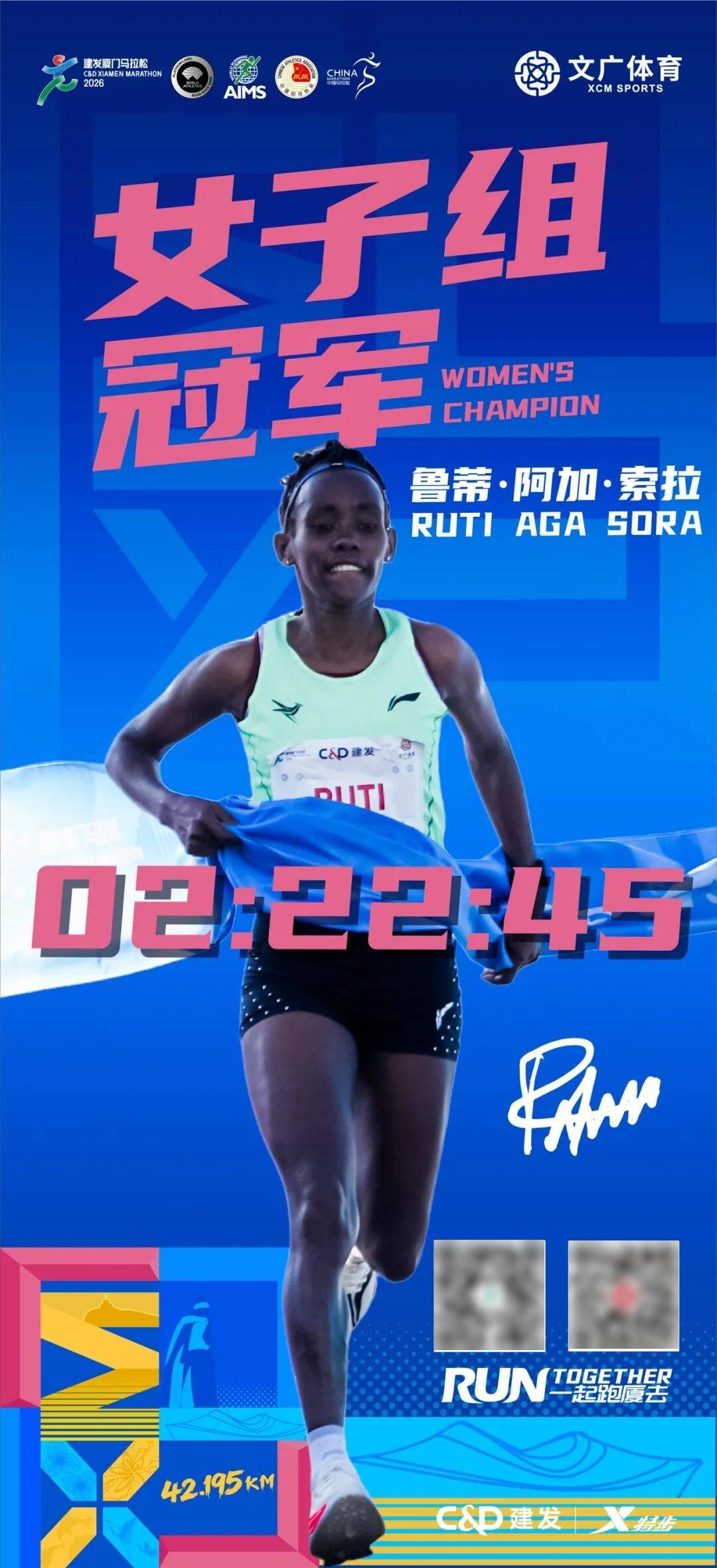 女子选手方面,厦马女子赛会记载连结者RUTI AGA SORA(鲁蒂·阿加·索拉)以02!22!45的成就卫冕成功,连任冠军。